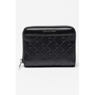 Портфейл Emossed Medium с цип и релеф, Черен CALVIN KLEIN