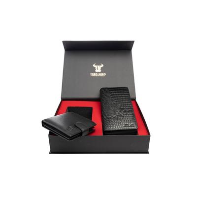 Комплект дамски портфейл и мъжки портфейл, естествена кожа, черен, Gia-Vita Opzioni Toro Nero