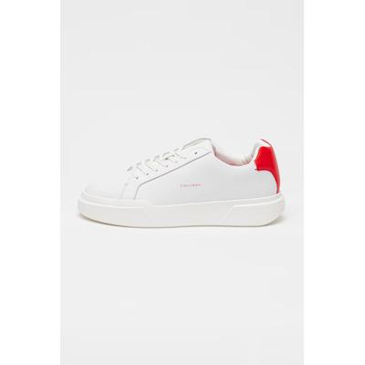 Кожени маратонки с лого, Бял/Аленочервен CALVIN KLEIN JEANS