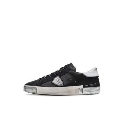 Мъжки кецове естествена кожа, черен, сребрист, PHILIPPE MODEL