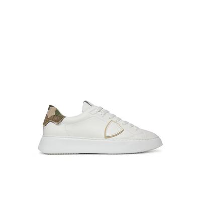 Мъжки кецове естествена кожа, бели, модел Bianc Vert Camou Striching, Бял PHILIPPE MODEL