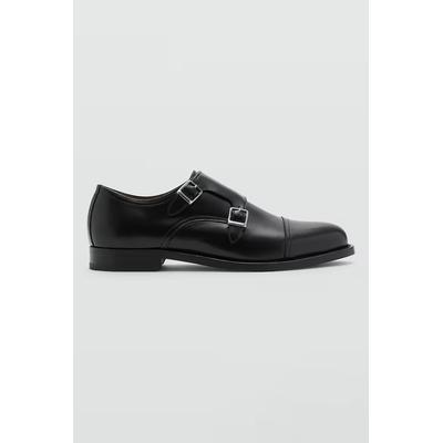 Кожени обувки с двойна широка каишка с тока, Черен Mango