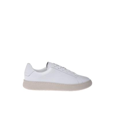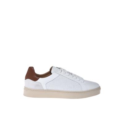 Кожени маратонки с перфорации и велур, Бял Baldinini