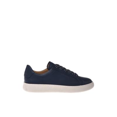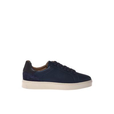 Кожени маратонки с перфорации и велур, Тъмносин Baldinini