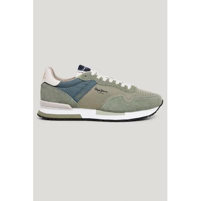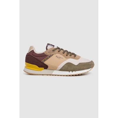 Велурени маратонки със синтетика, Коняк кафяв/Бежов/Зелени аспержи Pepe Jeans London