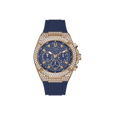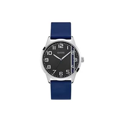 Мъжки часовник 44 мм, стоманен корпус, силиконова каишка, син цвят, водоустойчивост 5 ATM GUESS