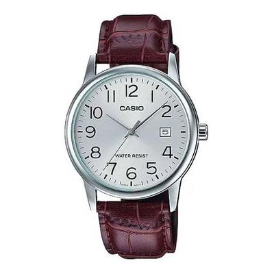 Кварцов часовник с кожена каишка с шагрен, Тъмночервен Casio