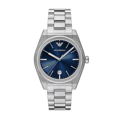 Кварцов часовник от неръждаема стомана, Сребрист, Сребрист/Тъмносин Emporio Armani