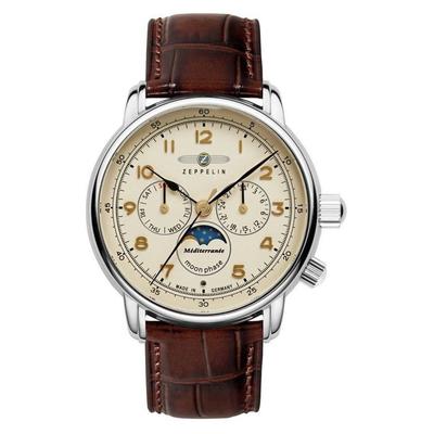 Мъжки часовник, Неръждаема стомана/Естествена кожа, Кафяв/Бежов Zeppelin