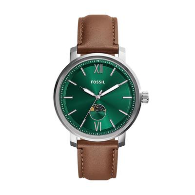 Часовник Rhett с кожена каишка, Сребрист/Кафяв Fossil