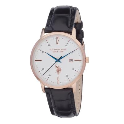 Часовник с кожена каишка с лого циферблат, Rose Gold/Черен U.S. Polo Assn.