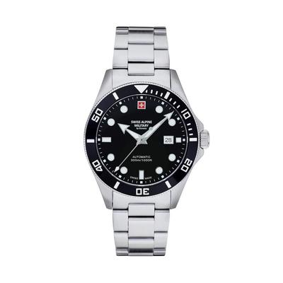 Мъжки часовник, неръждаема стомана, черен/сребърен Swiss Alpine Military