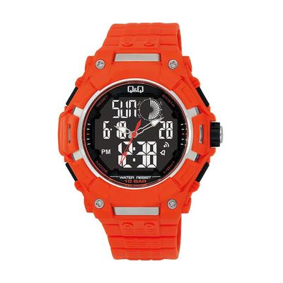 Цифров часовник с хронограф и каишка от смола, Черен Casio
