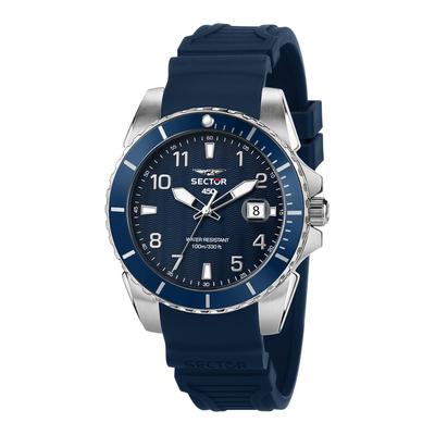Часовник със силиконова каишка, Сребрист, Сребрист/Тъмносин Sector