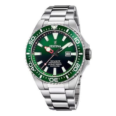 Часовник от неръждаема стомана със сребро, Зелен Festina