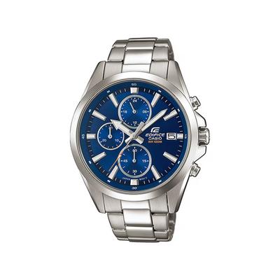 Часовник с хронограф и верижка от инокс, Сребрист / Тъмносин Casio