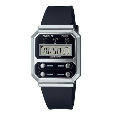 Унисекс цифров часовник с иноксова верижка, Тъмносив Casio