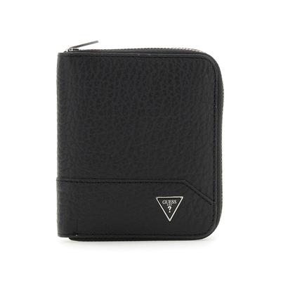 Кожен портфейл с цип, Черен GUESS