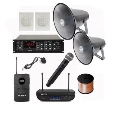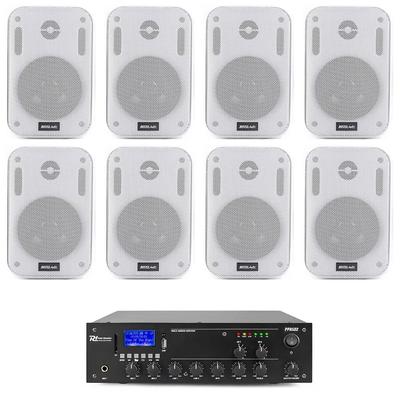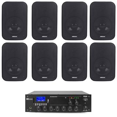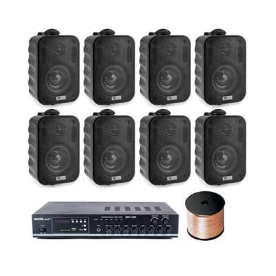 Аудио система, 2 зони, 8 външни колони, 100w усилвател, 100m кабел, USB, черен