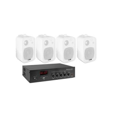 Аудио техника, с 4 стенни тонколони, 1 усилвател, Usb, Bluetooth, Бял