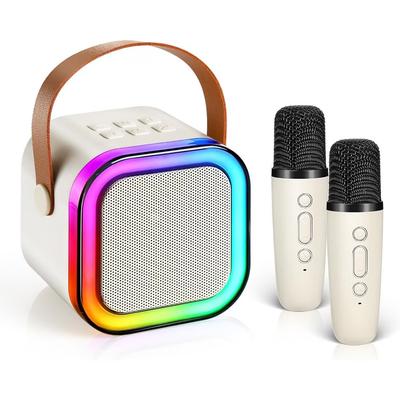 Караоке система, LED, преносима, 2 безжични микрофона, бежова