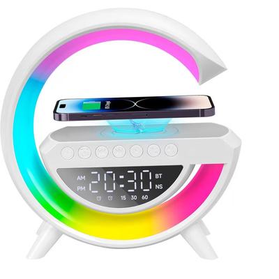 Преносима колонка, Bluetooth, безжично зареждане, LED, 13 режима на светене, бяла