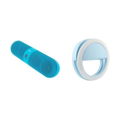 F-бас bluetooth преносим високоговорител, син + пръстен за селфи със светодиоди