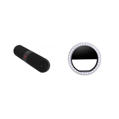 Преносим F-bass bluetooth високоговорител, черен + пръстен за селфита със светодиоди