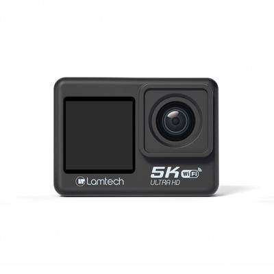 Екшън видеокамера Lamtech LAM113232, 24MP, 5K, Двоен екран 2" + 1.4", Водоустойчива 30 м Черен