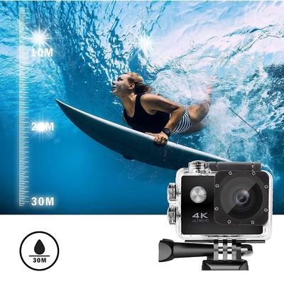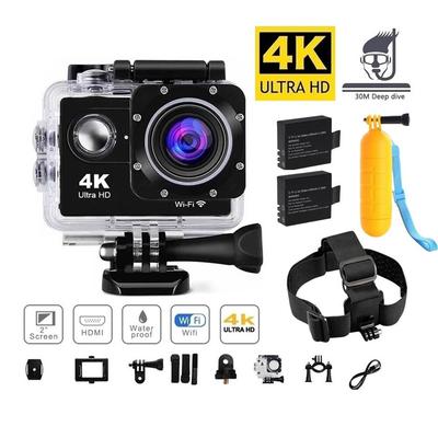 Екшън камера HD 4K, водоустойчива, с WiFi контрол, пълен комплект, черна, 40x60x25мм