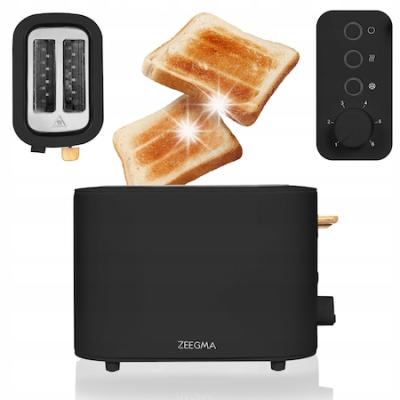 Тостер Zeegma Black 820W, 6 нива, елегантен дизайн, 2 филийки, тава за трохи