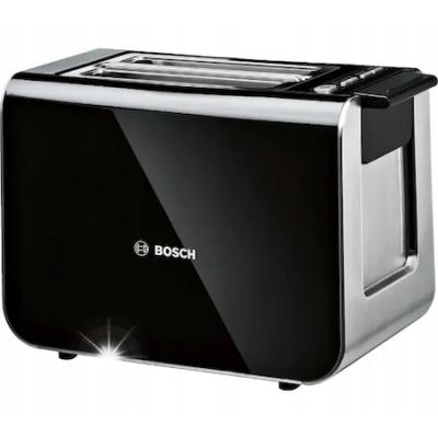 Тостер Bosch Styline, 2 филии, 860W, черно-сребрист, с приставка за кифлички, функция размразяване