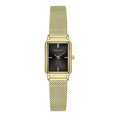 Правоъгълен часовник с верижка от неръждаема стомана, Златист Frederic Graff