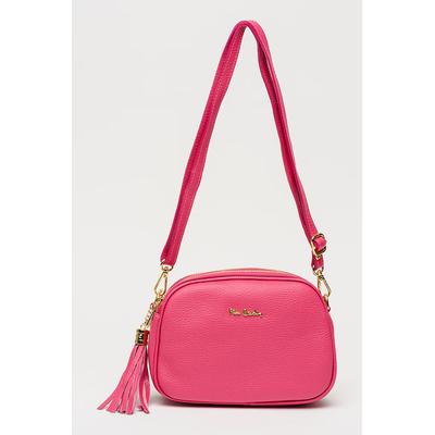 Кожена чанта през рамо с пискюл, Фуксия Pierre Cardin