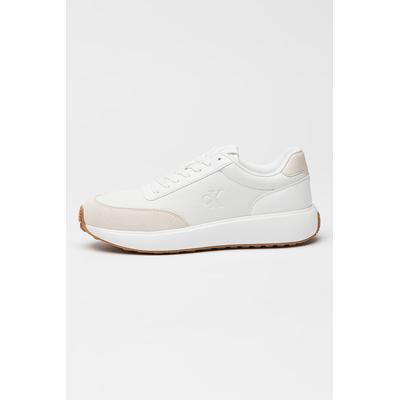 Кожени маратонки с лого, Бял/Сребрист CALVIN KLEIN JEANS