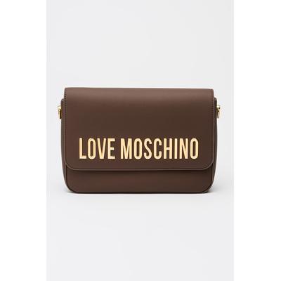 Чанта за рамо от еко кожа с контрастно лого, Тъмнокафяв Love Moschino