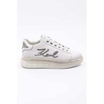 Кожени спортни обувки с лого, Бял/Сребрист Karl Lagerfeld