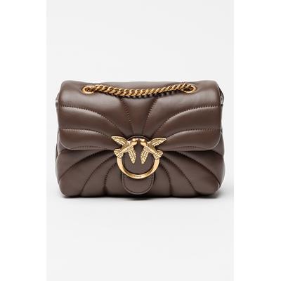 Кожена чанта през рамо Love Mini с капитониран дизайн, Тъмнокафяв Pinko