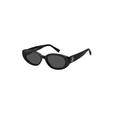 Овални слънчеви очила с метално лого, Черен Tommy Hilfiger