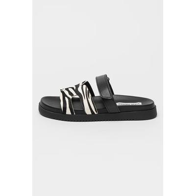 Чехли с кожа с косъм Missile, Слонова кост/Черен Steve Madden