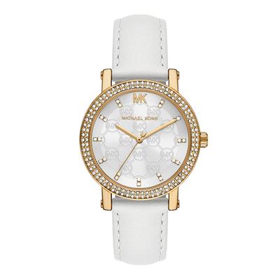 Кварцов часовник Corey с кожена каишка, Златист/Бял Michael Kors