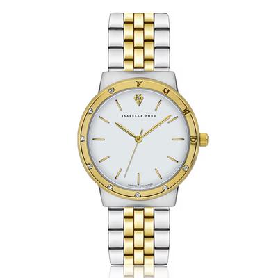 Часовник с 1 диамант и лого на циферблата, Златист/Бял Isabella Ford