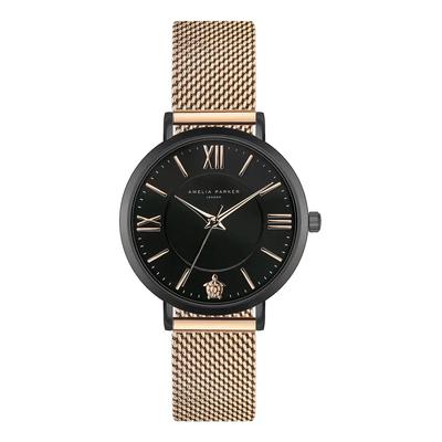 Кварцов часовник с мрежеста верижка, Розово злато Amelia Parker