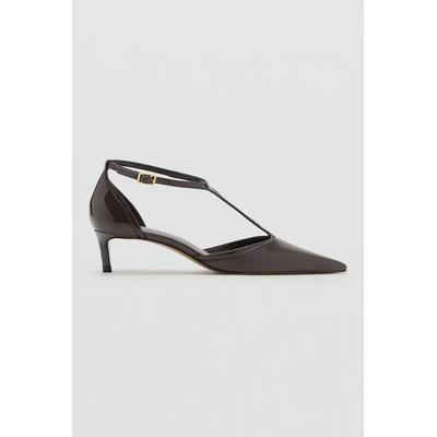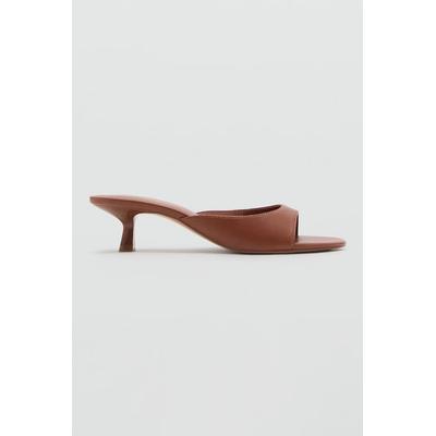 Обувки от еко кожа с ток и квадратен връх, Кафяв Mango
