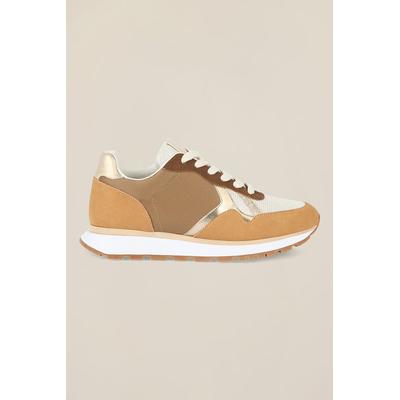 Скосени спортни обувки с покритие от еко велур, Бял/Карамел Oltre