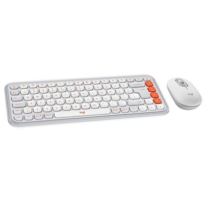 Комплект клавиатура и мишка Logitech - POP ICON COMBO, безжичен, Off White & Orange