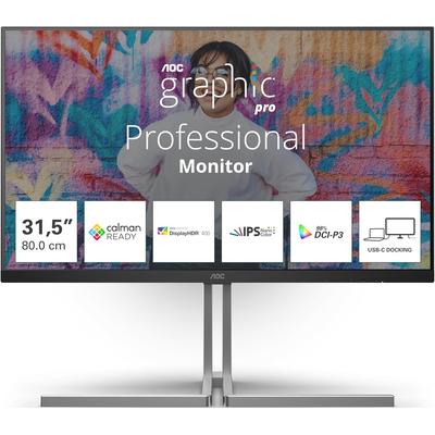 Монитор AOC - U32U3CV, 31.5'', UHD 4K, Nano IPS, Anti-Glare, USB Hub, черен