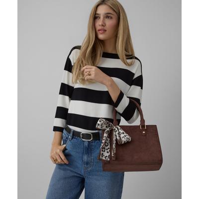 Кафява дамска чанта с декоративен шал