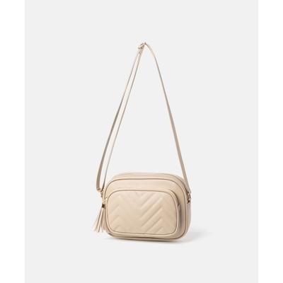 Дамска чанта бежова с пискюл
