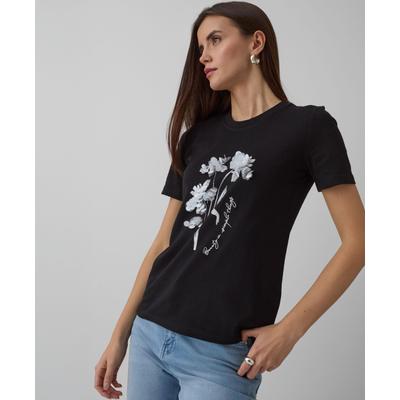 Дамска черна тениска с къси ръкави